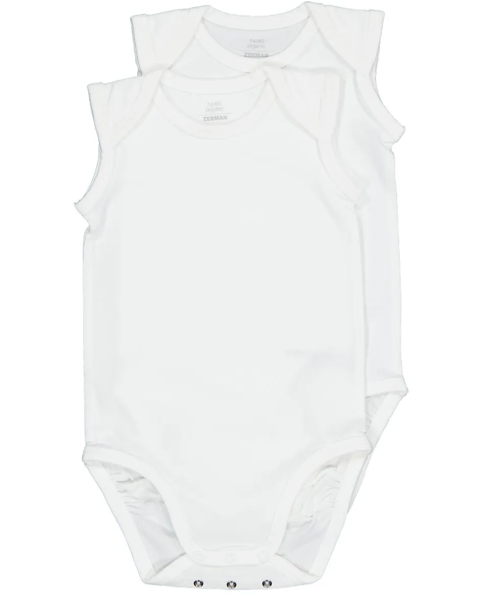 Ce lot de 2 bodys blancs sans manches est confectionné en coton agrémenté d’un peu d’élasthanne. Ainsi, le tissu est doux au toucher et légèrement extensible. Grâce aux boutons-pression à l’entrejambe, le body est facile à enfiler et à retirer.
