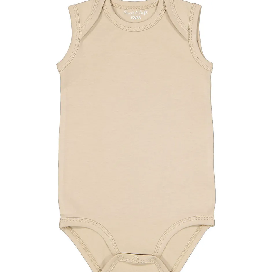 Ce body marron clair a une coupe sans manches, qui laisse les bras libres et offre une sensation de légèreté. Le tissu doux mêlant du coton avec un peu d’élasthanne est légèrement extensible, pour que le body épouse confortablement le corps. L’encolure américaine facilite l’habillage et le déshabillage. La couleur unie confère un style sobre.