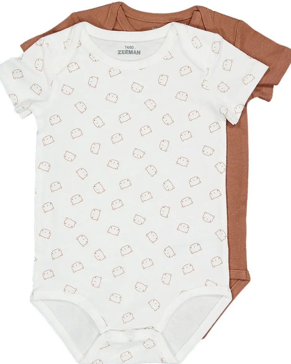 Ce body est fabriqué à 100 % en coton et convient aux bébés. Vous recevrez deux pièces, dont une de couleur marron et une blanche avec un motif de petits triangles marron. Les deux ont des manches courtes et conviennent aussi bien aux garçons qu’aux filles.