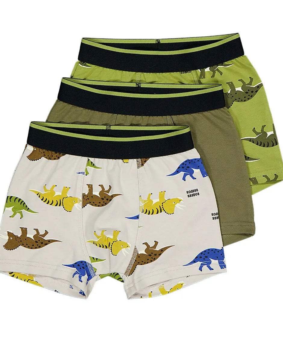 Ces 3 boxers pour garçon possèdent une taille élastiquée qui s’ajuste parfaitement et confortablement. Ils sont déclinés en vert et blanc et arborent un imprimé de dinosaures. Ils sont fabriqués dans un doux mélange de coton, polyester et élasthanne, ce qui garde le tissu souple et le rend agréable à porter, y compris lorsque votre enfant bouge.