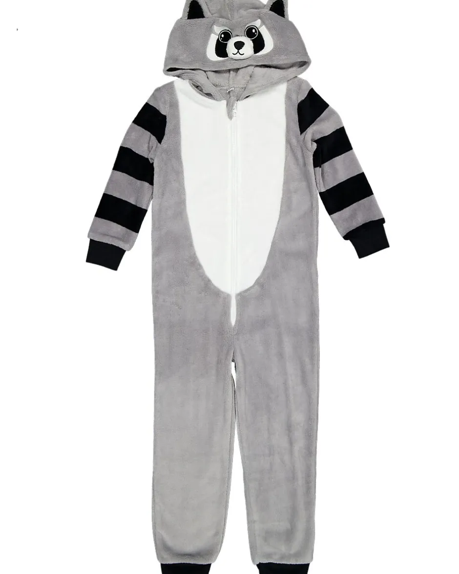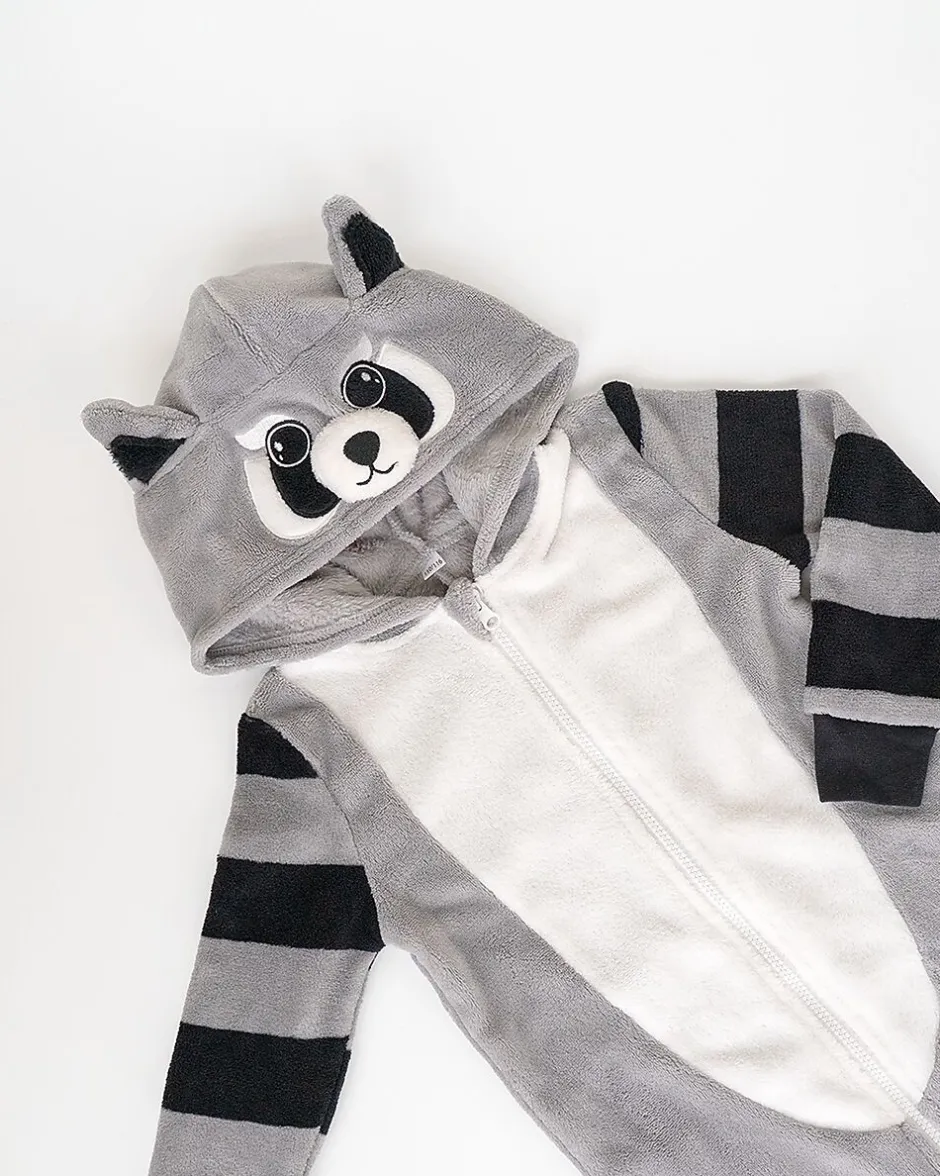 Cette combinaison grise est fabriquée en 100 % polyester polaire coral et est toute douce. La combinaison a une capuche avec un visage d’animal et des oreilles pour un effet ludique. La fermeture éclair sur le devant permet de l’enfiler et de l’enlever facilement. Grâce aux détails noirs sur les manches, la combinaison est encore plus sympa. Idéale pour rester bien au chaud et à l’aise à la maison.
