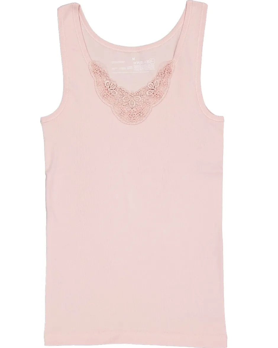 Ce débardeur rose pour femme est fabriqué en 100 % coton. Grâce à son tissu doux, il est confortable à porter et il laisse bien respirer la peau. Le débardeur présente une coupe simple avec un petit détail en dentelle au niveau du col pour un look subtil.