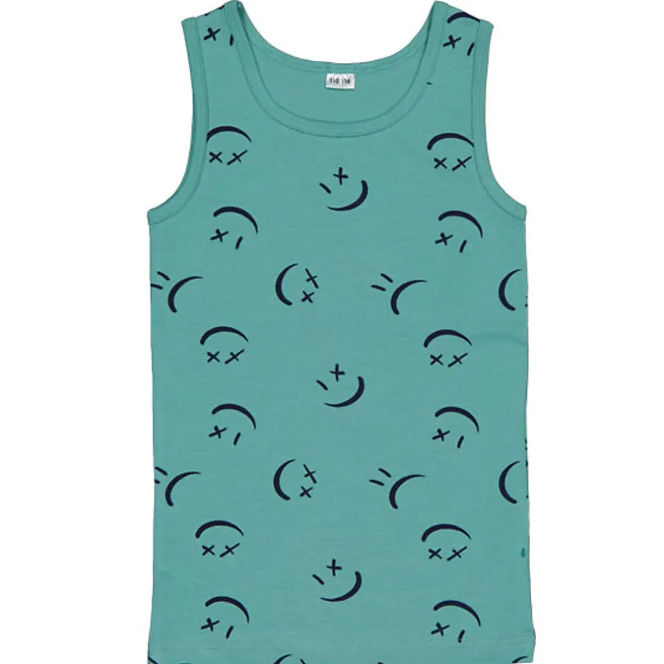 Ce débardeur pour garçon est en coton avec un peu d’élasthanne. Cela rend le tissu légèrement extensible et agréable à porter. Le débardeur a un col rond et un motif joyeux avec différents visages souriants. Grâce à la coupe sans manches, vous pouvez bouger facilement. Ce débardeur est pratique à porter sous un pull ou un gilet.