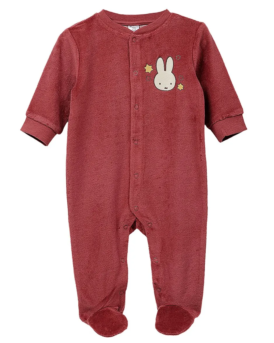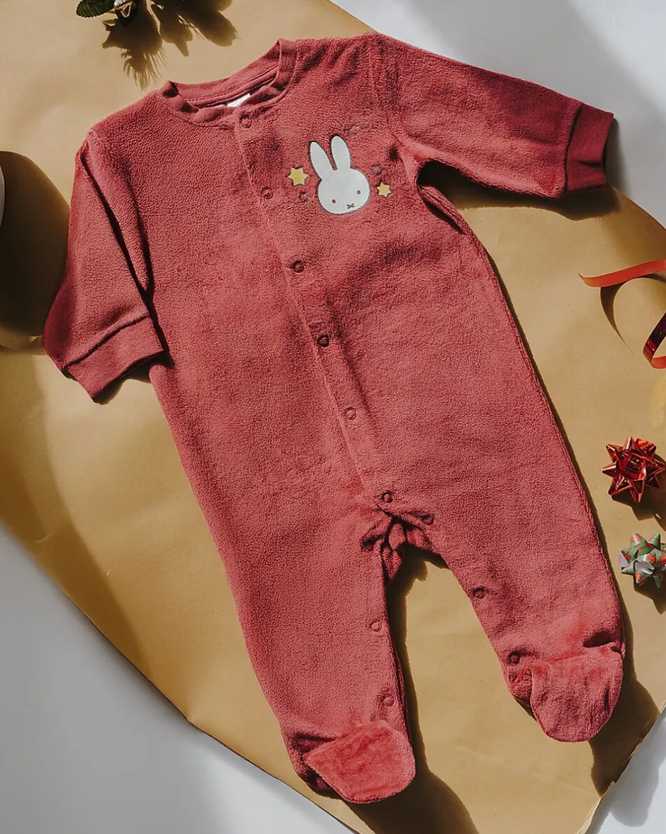 Ce dors-bien rouge pour bébé est fabriqué en velours doux, pour un confort optimal. Il possède des manches et des jambes longues, pour couvrir entièrement votre enfant. La poitrine est ornée du personnage Miffy avec deux petites étoiles. Grâce aux boutons-pression sur le devant, vous pouvez facilement habiller et déshabiller bébé, pour des changes rapides.