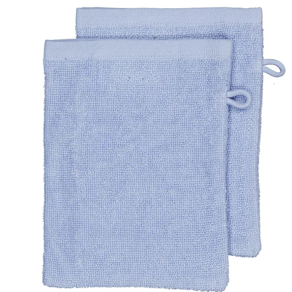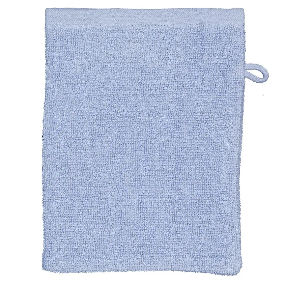 Ces gants de toilette bleu clair sont fabriqués en coton au grammage de 400 g/m². C’est un coton à la fois bien résistant et doux pour la peau. Le bord large leur donne un aspect luxueux et la boucle permet de les accrocher facilement. Ils ont des dimensions standard de 16 × 21 cm, pour un rangement facilité.