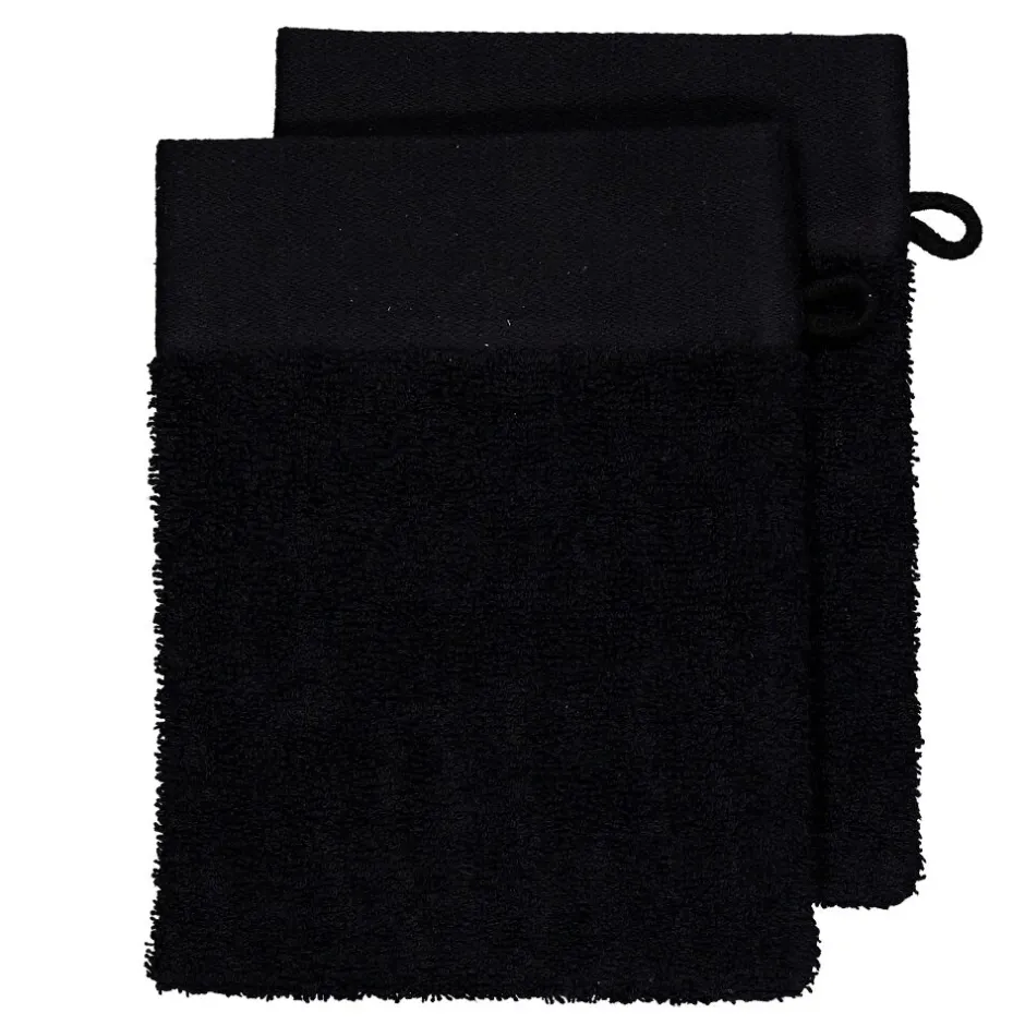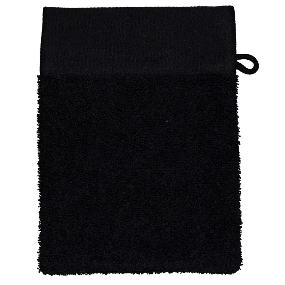 Ces gants de toilette noirs sont fabriqués en coton au grammage de 550 grammes par m². Ils sont donc bien épais, pour offrir une sensation de durabilité tout en étant doux pour la peau. Comme à l’hôtel ! Ils sont travaillés d’un large bord et possèdent une boucle pratique pour les accrocher facilement après utilisation. La couleur noire unie les rend moins salissants. Parfaits pour les soins qui tachent facilement, comme le démaquillage ou après une coloration des cheveux. Faciles à ranger grâce aux dimensions standard de 16 x 21 cm.