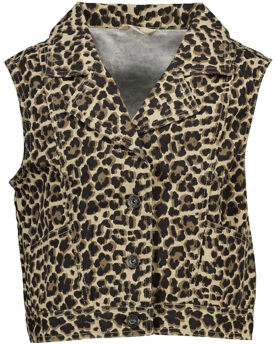 Ce gilet pour fille a un imprimé léopard bien visible et se ferme devant avec des boutons. Le col et le modèle sans manches donnent un style simple à porter, qui se combine facilement avec un jean ou une jupe. Grâce à la fermeture boutonnée, le gilet s’enfile et s’enlève facilement, pour être prête à partir rapidement.