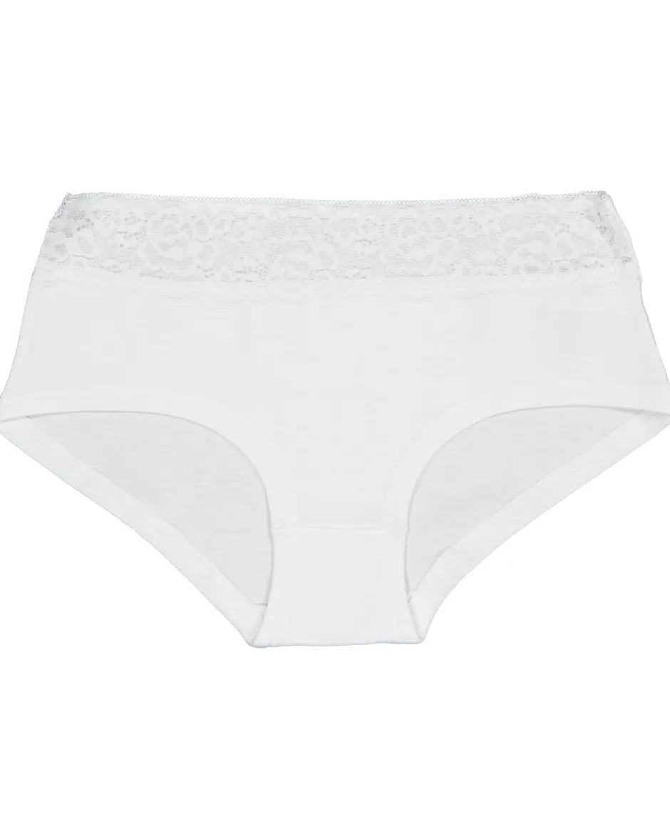 La composition est de 95 % coton et 5 % élasthanne. La dentelle est composée de 90 % polyamide et 10 % élasthanne. Le coton rend le tissu doux et respirant. Il laisse mieux passer l’air que beaucoup d’autres matières et a un effet ventilant. Le polyamide est résistant et garde sa couleur plus longtemps. Grâce à l’élasthanne, le tissu est plus extensible. Cela assure une coupe près du corps.
