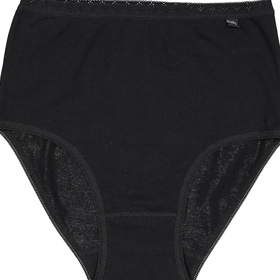 Nos culottes Mady sont populaires depuis de nombreuses années grâce à leur design confortable à taille haute et à leur matière extensible. La culotte remonte bien au niveau de la taille pour un meilleur maintien. La taille élastiquée est large et douce, elle ne serre donc pas la peau et maintient la culotte noire bien en place. Les coutures ont une finition lisse, qui ne frottent pas désagréablement contre la peau. Beaucoup de nos clientes portent également cette culotte comme sous-vêtement de grossesse ou post-accouchement. Le lot contient deux culottes.
