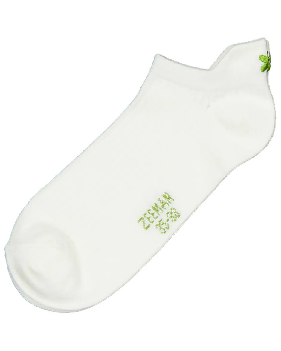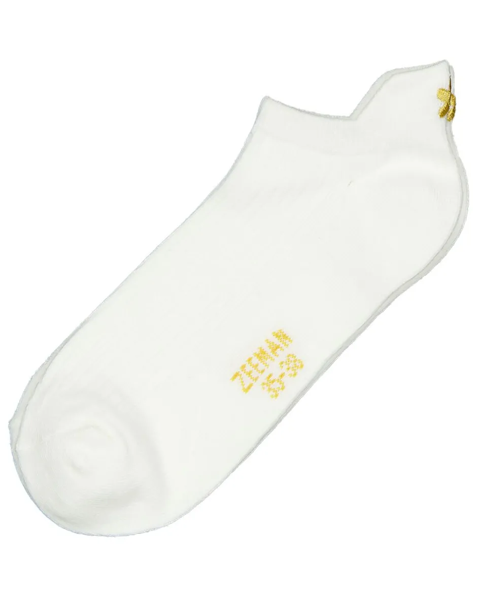 Ces chaussettes de sneakers blanches sont vendues par lot de cinq. Le petit motif coloré sur le dessus permet de les distinguer facilement. Leur coupe basse reste discrète sous beaucoup de chaussures, pour un look simple. Le tissu doux s’adapte bien au pied, ce qui les rend agréables et confortables à porter au quotidien.