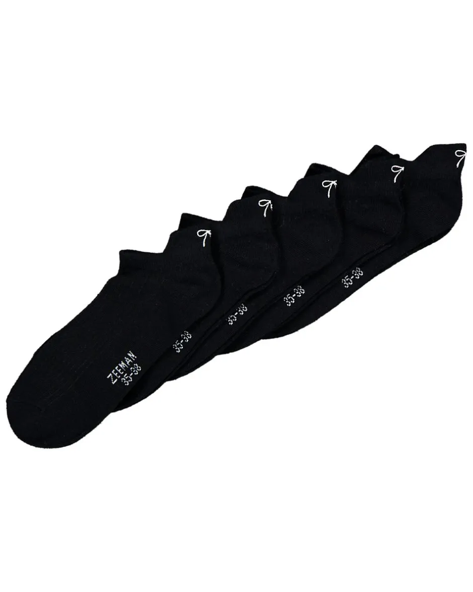 Ces chaussettes basses noires sont vendues par cinq. Leur coupe basse tombe autour du pied, ce qui les rend discrètes dans vos chaussures. Le bord doux tient bien en place, pour que les chaussettes restent fixées quand vous marchez. Leur couleur unie est pratique pour un usage quotidien et se combine facilement avec vos chaussures.