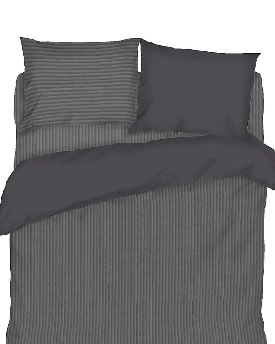 Cette parure de lit est fabriquée en velours doux et présente un motif rayé sobre dans des tons foncés. Elle comprend une housse de couette et deux taies d’oreiller. Convient pour un lit deux personnes de 200 sur 200 centimètres. Le tissu est agréable au toucher et apporte à votre chambre une ambiance chaleureuse.