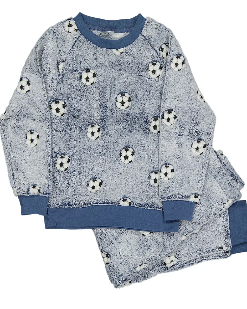 Ce twosie bleu pour garçon se compose d’un pull et d’un pantalon en coral fleece doux et confortable, 100 % polyester. L’ensemble a un motif de ballon de football et des bords côtelés. Idéal à porter à la maison pendant les jours plus froids. Le tissu tient votre enfant bien au chaud et se lave facilement. Cela rend cet ensemble pratique pour un usage quotidien.