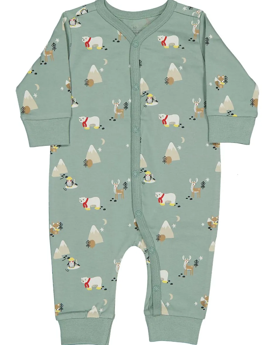 Ce pyjama pour bébé vert est confectionné dans un tissu doux composé de 97 % de coton et 3 % d’élasthanne. Le pyjama se ferme facilement à l’avant grâce à des boutons-pression et a des manches longues. Le tissu est imprimé avec un motif joyeux d’animaux et de montagnes. Grâce au tissu souple et à la fermeture pratique, il est facile à enfiler et à enlever, aussi bien pour vous que pour votre bébé.