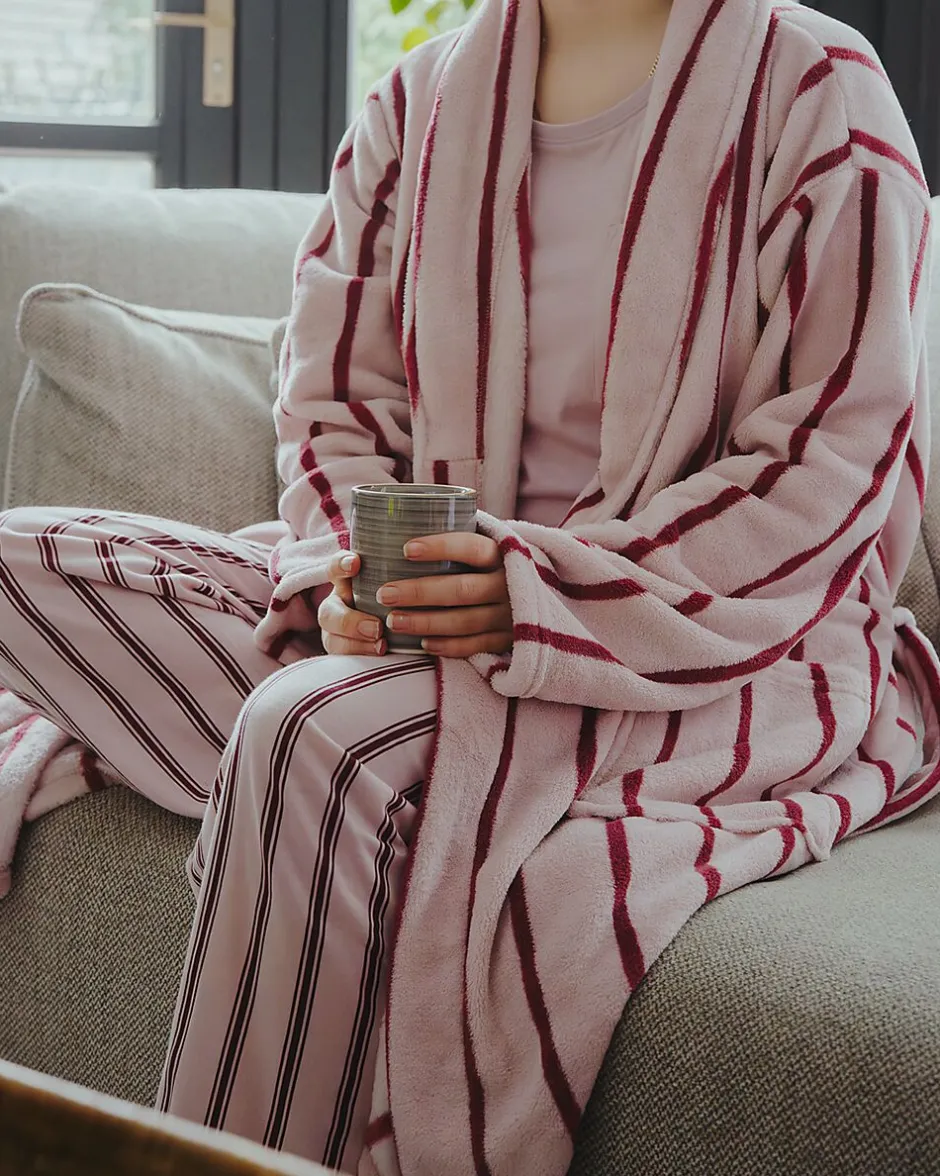 Ce pyjama pour femme se compose d’un haut long à col rond avec une poche poitrine, assorti d’un pantalon long à rayures violettes et blanches. Le pyjama est fabriqué en jersey simple 100 % coton biologique, agréable sur la peau. Avec ses manches longues et son pantalon long, il tient bien chaud pendant les nuits plus fraîches.
