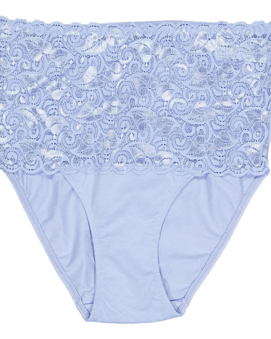 Cette culotte taille haute violette pour femme est ornée d’une large bande de dentelle fantaisie sur le haut. En coton travaillé d’un peu d’élasthanne, elle est douce et légèrement extensible. Grâce à sa taille haute, la culotte épouse agréablement les formes. Vous recevrez un lot de deux culottes, pour pouvoir facilement alterner.