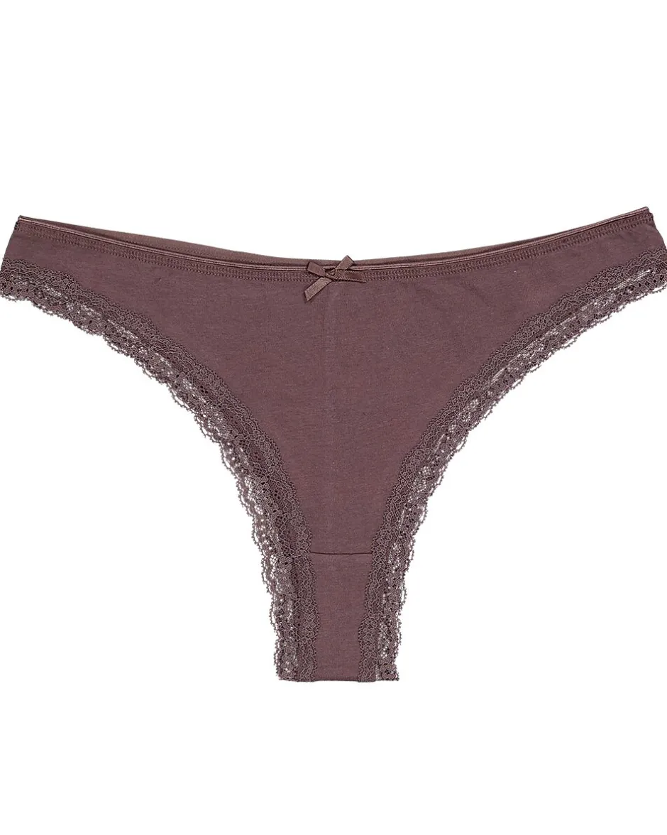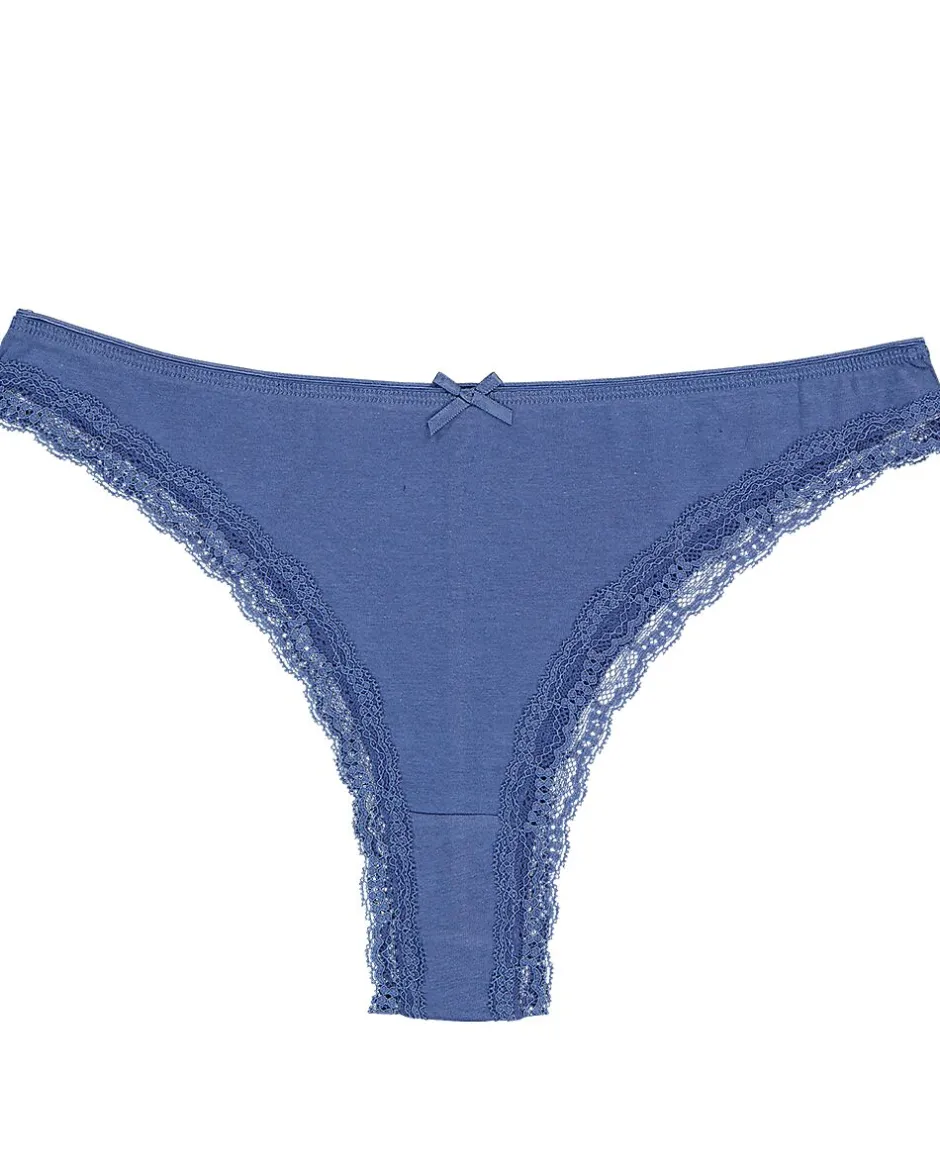 Cet ensemble de deux strings pour femme comprend un modèle bleu foncé et un modèle brun. Le tissu doux avec une bordure en dentelle s’adapte bien, ce qui permet de bouger confortablement et de garder les strings bien en place sous les vêtements. Grâce à l’utilisation de coton avec une petite part d’élasthanne, le tissu s’étire légèrement pour offrir plus de liberté de mouvement.