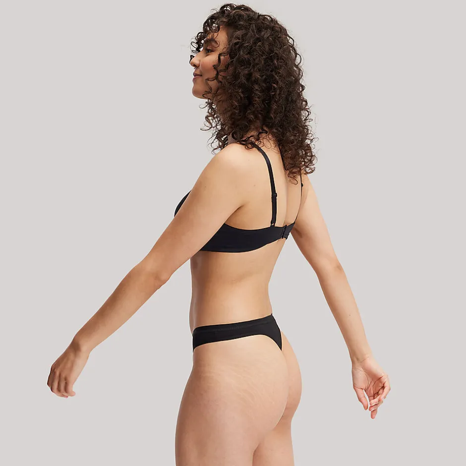 Ce string noir pour femme est fabriqué en coton légèrement travaillé d’élasthanne, pour un tissu agréable et légèrement extensible. Le string possède une ceinture fine et des coutures à la finition discrète, ce qui le rend presque invisible sous vos vêtements tout en étant doux sur la peau. La couleur noire unie permet d’associer ce string avec beaucoup d’autres sous-vêtements. Le lot contient trois strings.