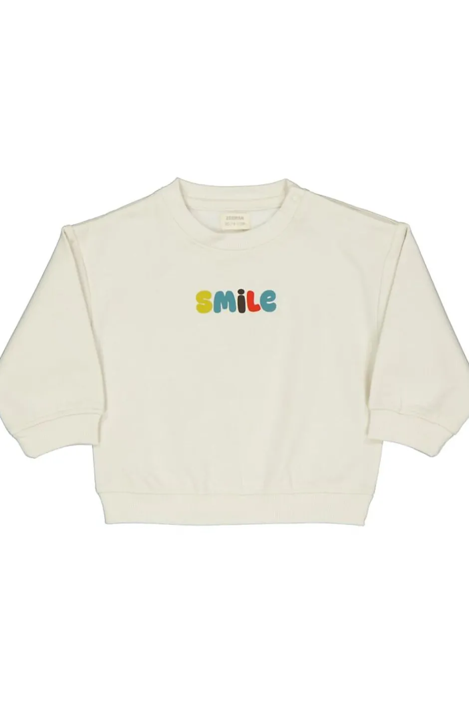 Ce sweat beige pour bébé est en french terry doux et a des manches longues. Le mot « smile » en lettres colorées donne un aspect joyeux. L’encolure ronde et les bords aux manches et à la base sont bien ajustés pour que le pull soit confortable à porter. Convient pour un usage quotidien.