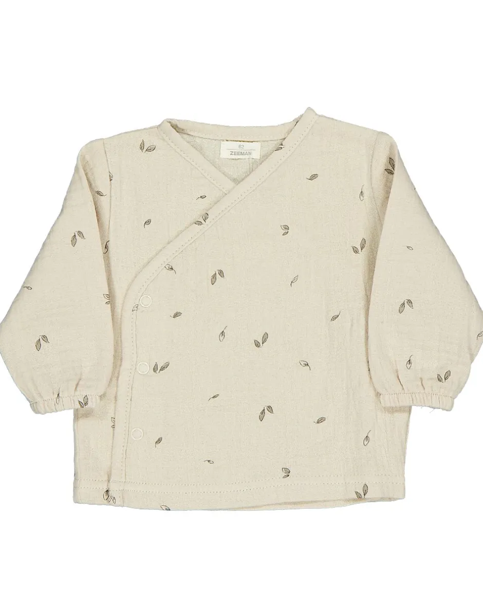 Ce t-shirt pour bébé beige est fabriqué en 100% coton et est doux sur la peau. Le t-shirt a une fermeture croisée, ce qui le rend facile à mettre et à enlever. Pratique pour changer votre bébé. Les manches longues avec élastique assurent un bon ajustement. L’imprimé discret donne au t-shirt un aspect calme. Confortable pour tous les jours.