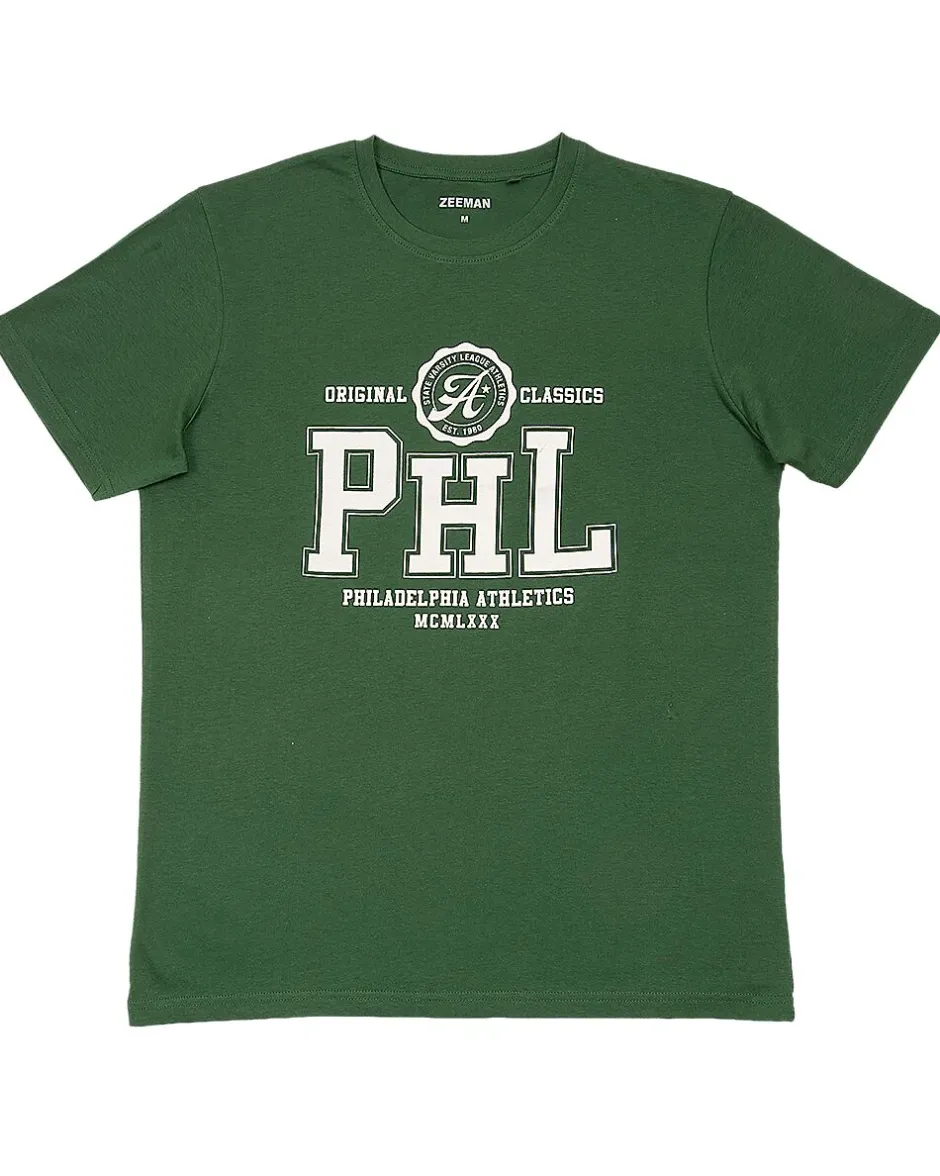 Ce t-shirt vert pour homme est en 100 % coton. Il a des manches courtes, un col rond et une inscription blanche sur le devant. Le coton rend le t-shirt doux au toucher. Ce t-shirt se porte facilement au quotidien et se combine simplement avec d’autres vêtements.
