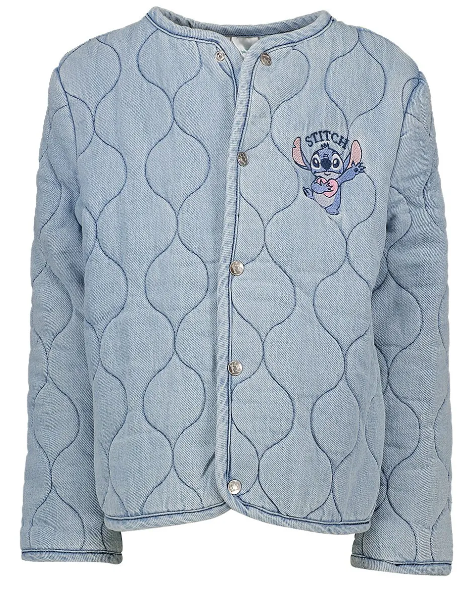 Cette veste bleue pour fille est en denim et a un matelassage qui donne un toucher ferme et tient bien chaud. Elle se ferme facilement avec des pressions à l’avant, pour l’enfiler rapidement. Stitch est imprimé sur la poitrine, ce qui donne un côté ludique à la veste. Grâce à sa coupe droite, elle se porte confortablement à l’extérieur.