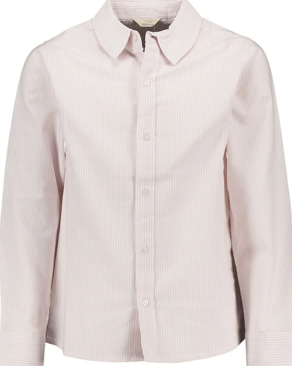 Cette chemise pour garçon a des manches longues et un col avec fermeture à boutons. Le tissu blanc est orné de fines rayures roses. Grâce à sa matière légère, la chemise est confortable à porter et convient à diverses occasions.