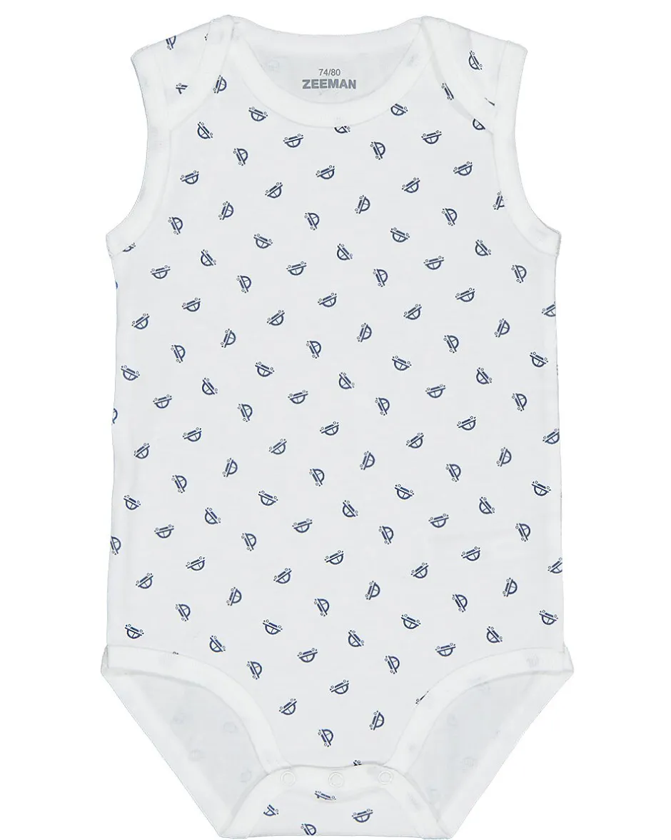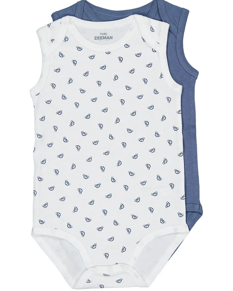 Cet ensemble de deux bodies pour bébé se compose d’un body bleu uni et d’un body blanc avec un motif de gouttes bleues. Les bodies sont sans manches pour que votre bébé puisse bouger facilement. Ils sont en coton, ce qui les rend doux et respirants sur la peau. Grâce aux boutons-pression en bas, ils sont faciles à mettre et à enlever.