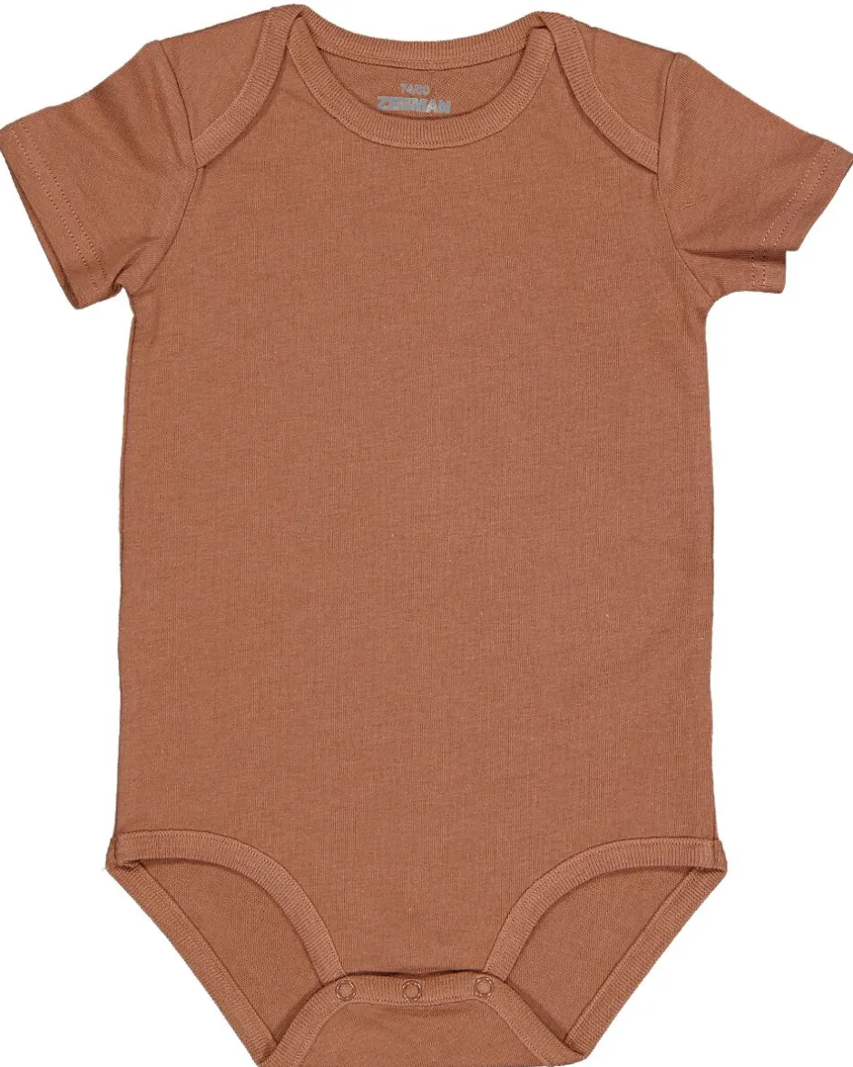 Ce body est fabriqué à 100 % en coton et convient aux bébés. Vous recevrez deux pièces, dont une de couleur marron et une blanche avec un motif de petits triangles marron. Les deux ont des manches courtes et conviennent aussi bien aux garçons qu’aux filles.