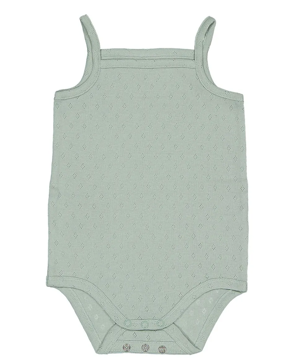 Cet ensemble de deux bodies verts est fabriqué en 100 % coton. Le tissu est doux et respirant sur la peau. Les fines bretelles offrent une bonne liberté de mouvement, ce qui permet de bouger facilement. Grâce aux boutons-pression en bas, les bodies s’enfilent et s’enlèvent rapidement. Ces bodies conviennent aux bébés.