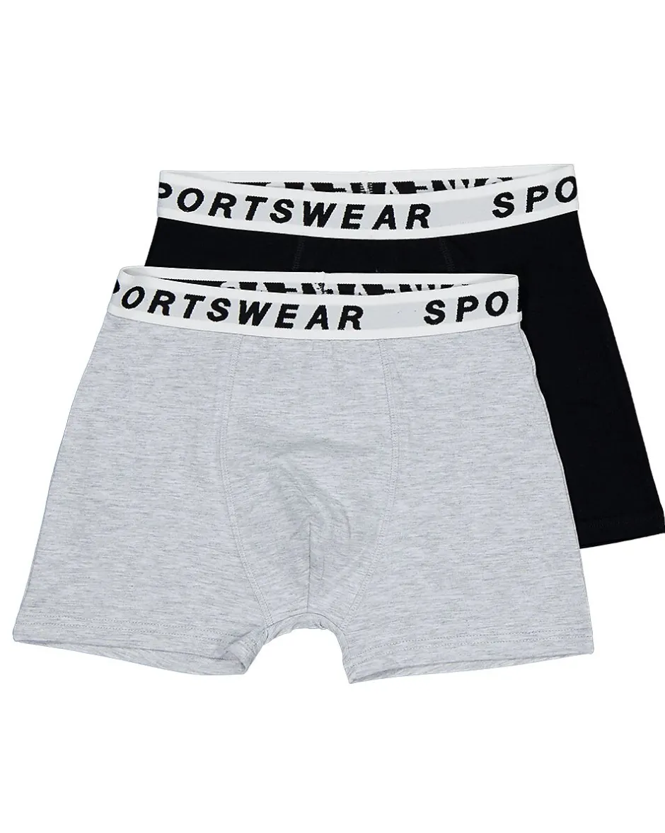 Cet ensemble de deux boxers pour garçon comprend une version grise et une version noire. Les deux boxers sont dotés d’une large ceinture élastique arborant l’inscription « SPORTSWEAR ». Le tissu est composé de 55 % coton, 40 % polyester et 5 % élasthanne, ce qui offre un ajustement confortable et flexible. Ces boxers sont pratiques pour un usage quotidien et épousent parfaitement la forme du corps.