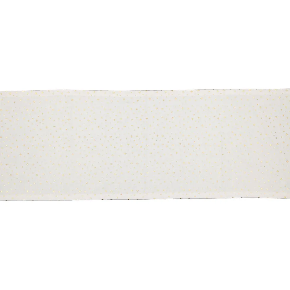 À Noël, vous voulez aussi donner une ambiance de fête à votre table. Ce joli chemin de table blanc cassé avec des étoiles dorées vous y aidera sûrement. Il mesure 50 x 40 cm. Le tissu est composé de 66% polyester, 31% coton et 3% viscose. Une touche élégante pour les fêtes.