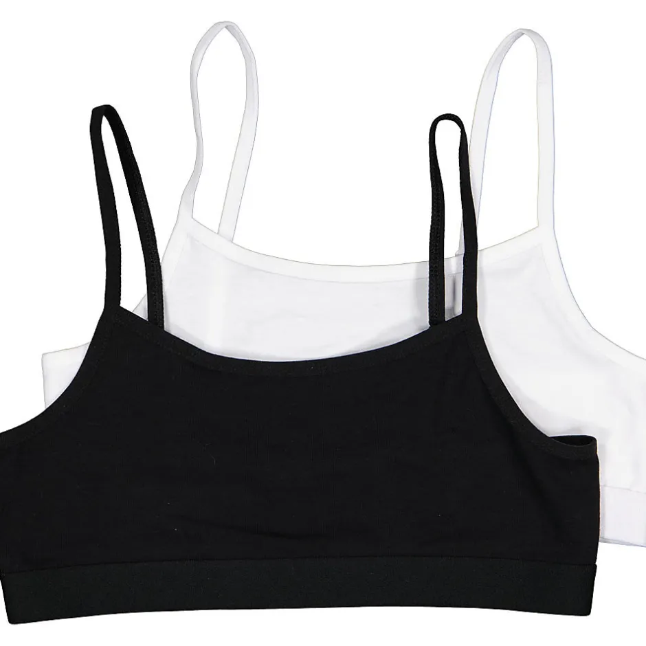 Ce lot de 2 brassières Claire pour fille comprend un modèle noir et un modèle blanc. Les brassières possèdent de fines bretelles et une encolure droite. Grâce à leur composition à 95 % de coton et 5 % d’élasthanne, elles sont douces et légèrement extensibles, offrant ainsi un confort optimal et une grande liberté de mouvement.