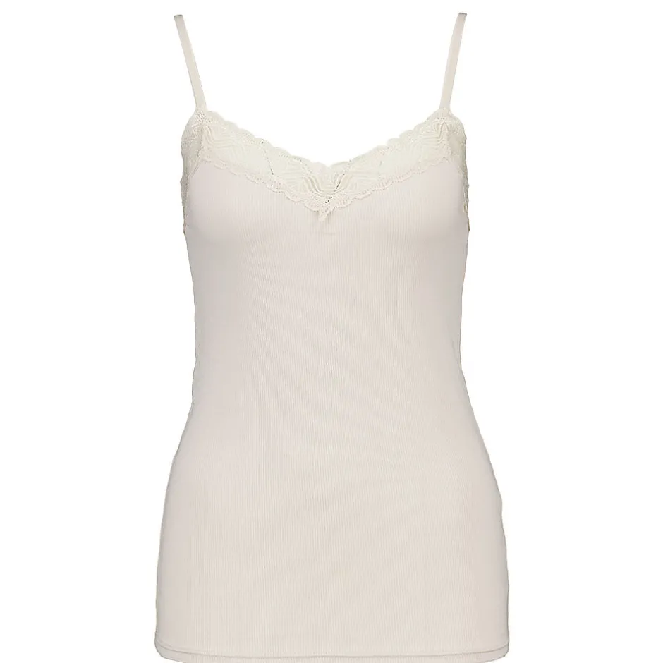 Ce débardeur beige pour femme a de fines bretelles et un col en V avec une bordure en dentelle le long du décolleté. Le tissu doux, avec du coton et un peu d’élasthanne, est agréable à porter. Il s’étire légèrement et offre un bon confort. Son design uni permet de le porter facilement sous un chemisier ou un pull.