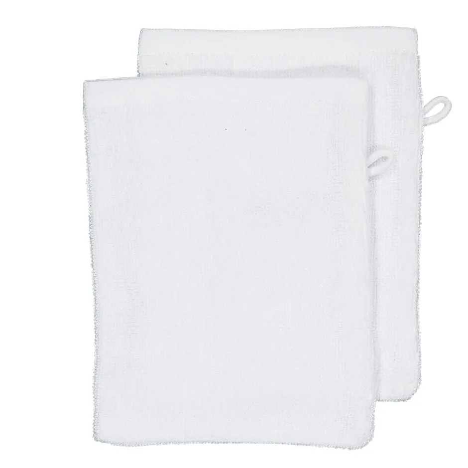 Ces gants de toilette blancs sont fabriqués en coton au grammage de 400 g/m². C’est un coton à la fois bien résistant et doux pour la peau. Le bord large leur donne un aspect luxueux et la boucle permet de les accrocher facilement. Ils ont des dimensions standard de 16 × 21 cm, pour un rangement facilité.
