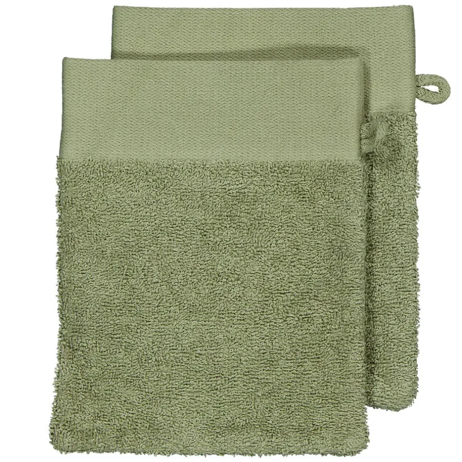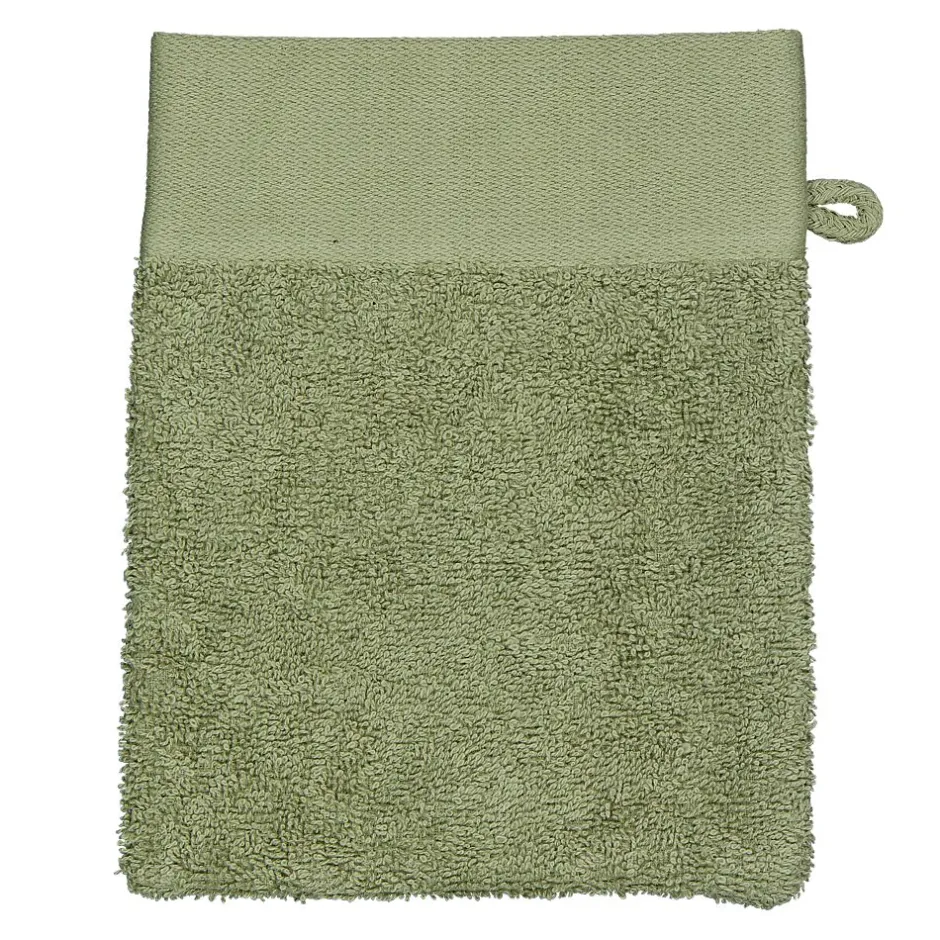 Ces gants de toilette verts sont fabriqués en coton au grammage de 550 grammes par m². C’est un coton bien épais, qui se montre bien résistant tout en étant particulièrement doux pour la peau. Offrant la même qualité que le linge d’hôtel, le gant est juste parfait pour des soins agréables. Le bord large leur donne un aspect luxueux et la boucle permet de les accrocher facilement. Ils ont des dimensions standard de 16 × 21 cm, pour un rangement facilité.