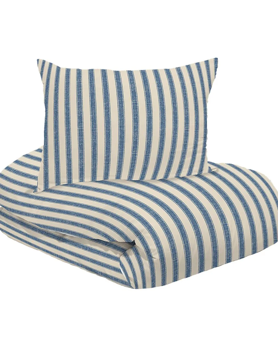 Cette parure de lit présente un motif rayé bleu et blanc. La housse de couette offre des dimensions généreuses qui recouvrent entièrement votre lit. Grâce aux couleurs sobres, vous donnez à votre chambre une atmosphère sereine. Les taies d’oreiller assorties complètent votre parure de lit pour un aspect soigné.