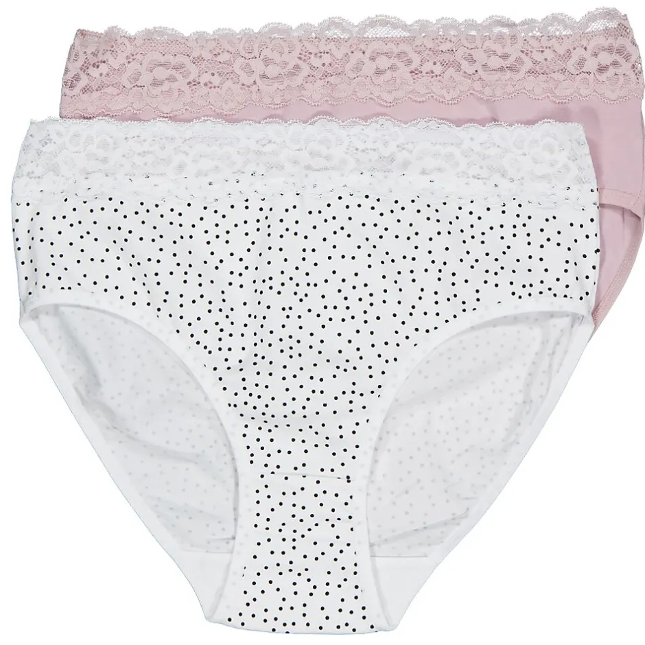 Ce lot se compose de deux shortys Jane pour femme, l’un blanc à pois et l’autre rose clair. Les deux shortys sont dotés d’une large bande de dentelle douce à la taille. Grâce à leur composition coton/élasthanne, ils sont souples, légèrement extensibles et épousent bien les formes.
