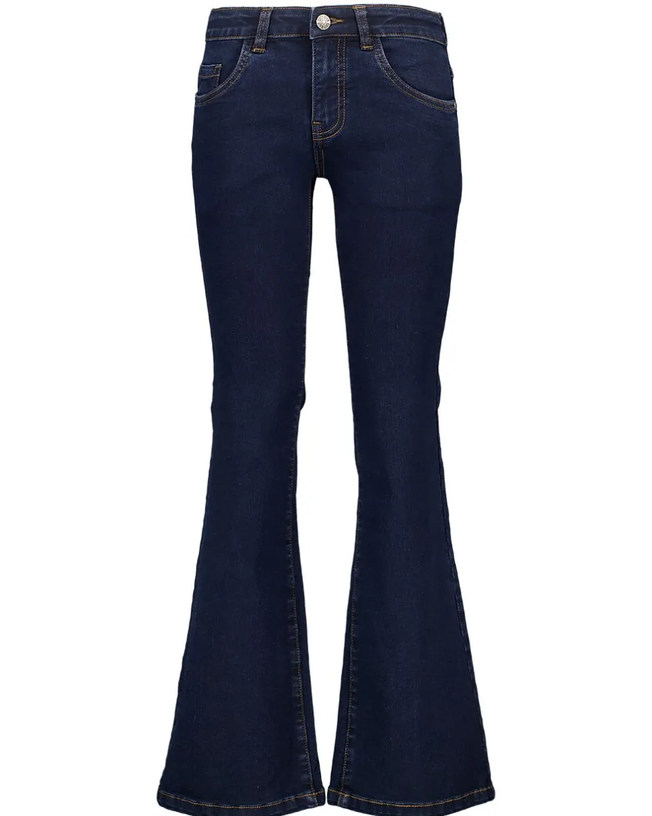 Ce jean bleu pour fille a une coupe évasée avec des jambes larges. Il a une fermeture classique avec un bouton et une fermeture éclair, des poches fendues à l’avant et des poches cousues à l’arrière. Il est fabriqué dans un mélange de coton, polyester et élasthanne, ce qui le rend agréable à porter et offre une bonne liberté de mouvement. Il convient bien à un usage quotidien grâce au tissu résistant et à son style intemporel.