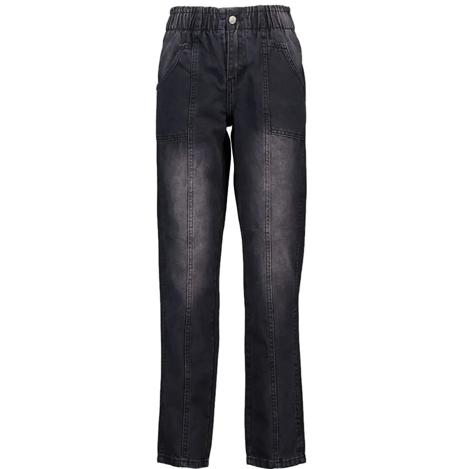 Ce jean noir est confectionné en 100 % coton et présente une coupe droite. Ce pantalon en denim est doté d’une taille élastique avec fermeture à bouton. Aucun motif distinctif ni détail supplémentaire n’est visible. Grâce à sa coupe confortable, ce jean convient parfaitement à un usage quotidien. Il s’associe facilement avec différents hauts.