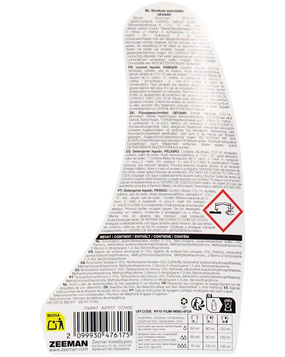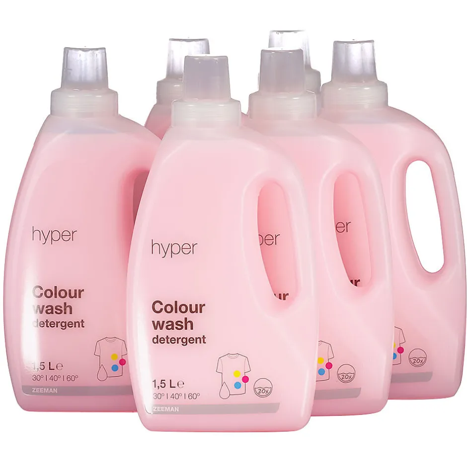 Cette lessive Hyper convient à votre linge de couleur et est très bon marché, car nous la faisons fabriquer en très grandes quantités. Le bouchon est refermable et peut également servir de doseur. Il vous permet ainsi de doser la lessive proprement et sans renverser. Un flacon permet environ 20 lavages. Vendue par lot de 6 flacons de 1,5 L. Le prix affiché est à l’unité.