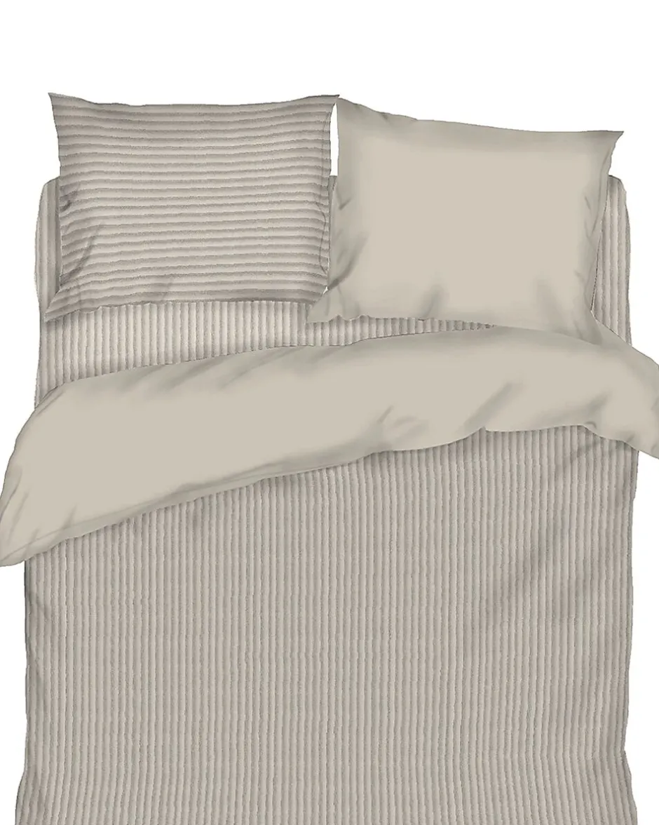 Cette parure de couette présente un joli motif rayé avec taie d’oreiller unie. Le tissu de velours doux garantit un lit confortable. Grâce à ses couleurs neutres, la parure s’accorde avec différents styles d’intérieur. Convient pour un lit deux personnes de 200 sur 200 centimètres. Facile à combiner, ce linge de lit crée une atmosphère apaisante dans la chambre.