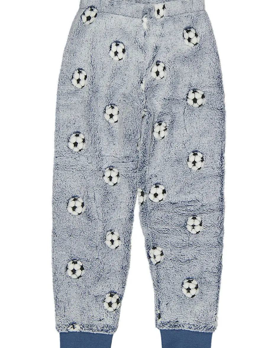 Ce twosie bleu pour garçon se compose d’un pull et d’un pantalon en coral fleece doux et confortable, 100 % polyester. L’ensemble a un motif de ballon de football et des bords côtelés. Idéal à porter à la maison pendant les jours plus froids. Le tissu tient votre enfant bien au chaud et se lave facilement. Cela rend cet ensemble pratique pour un usage quotidien.