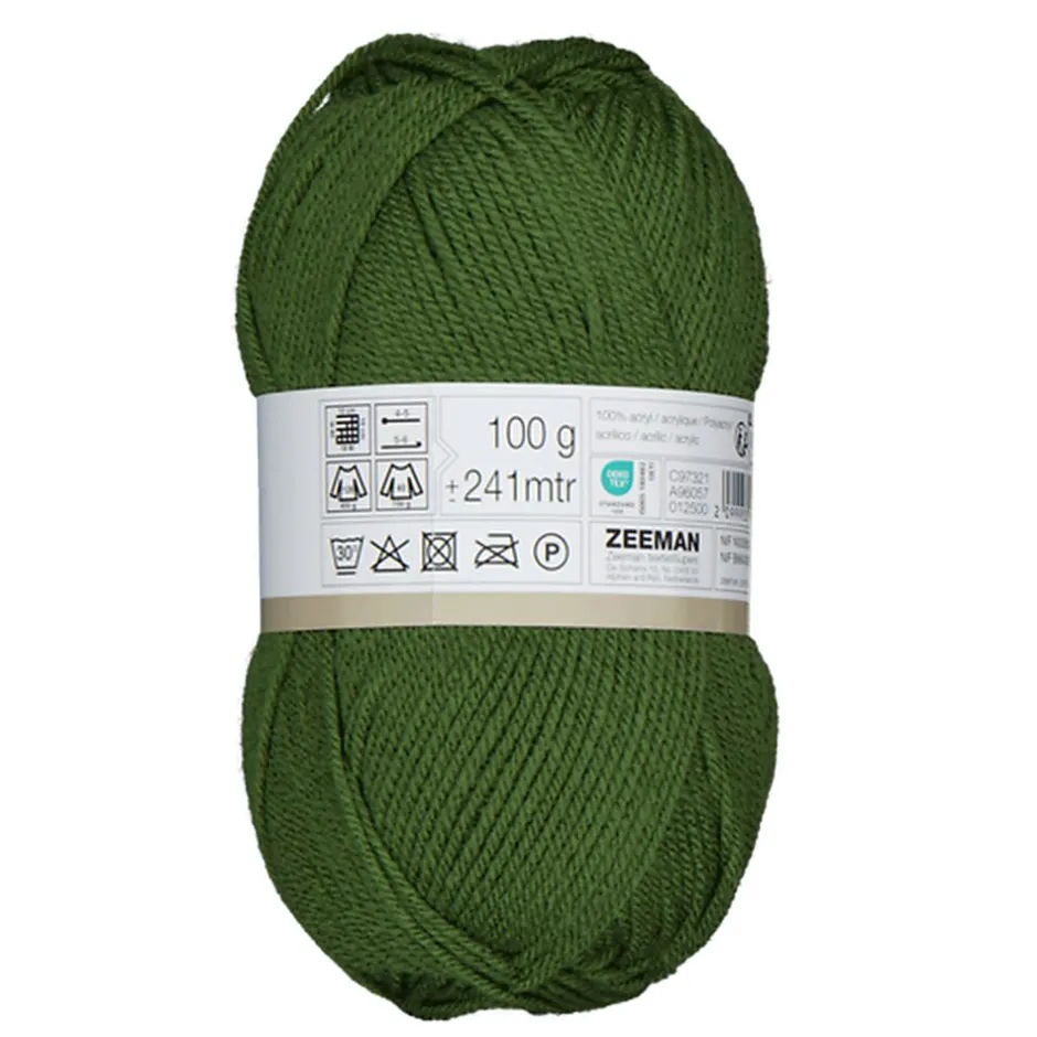 Fil à tricoter vert 100 % acrylique. Idéal pour une grande variété de projets de crochet et de tricot grâce à sa texture douce et son fil solide. Une pelote pèse 100 grammes. Un échantillon de 10 x 10 cm contient 18 mailles et 28 rangs. Convient pour des aiguilles à tricoter de taille 4-5 et des crochets de taille 5-6.