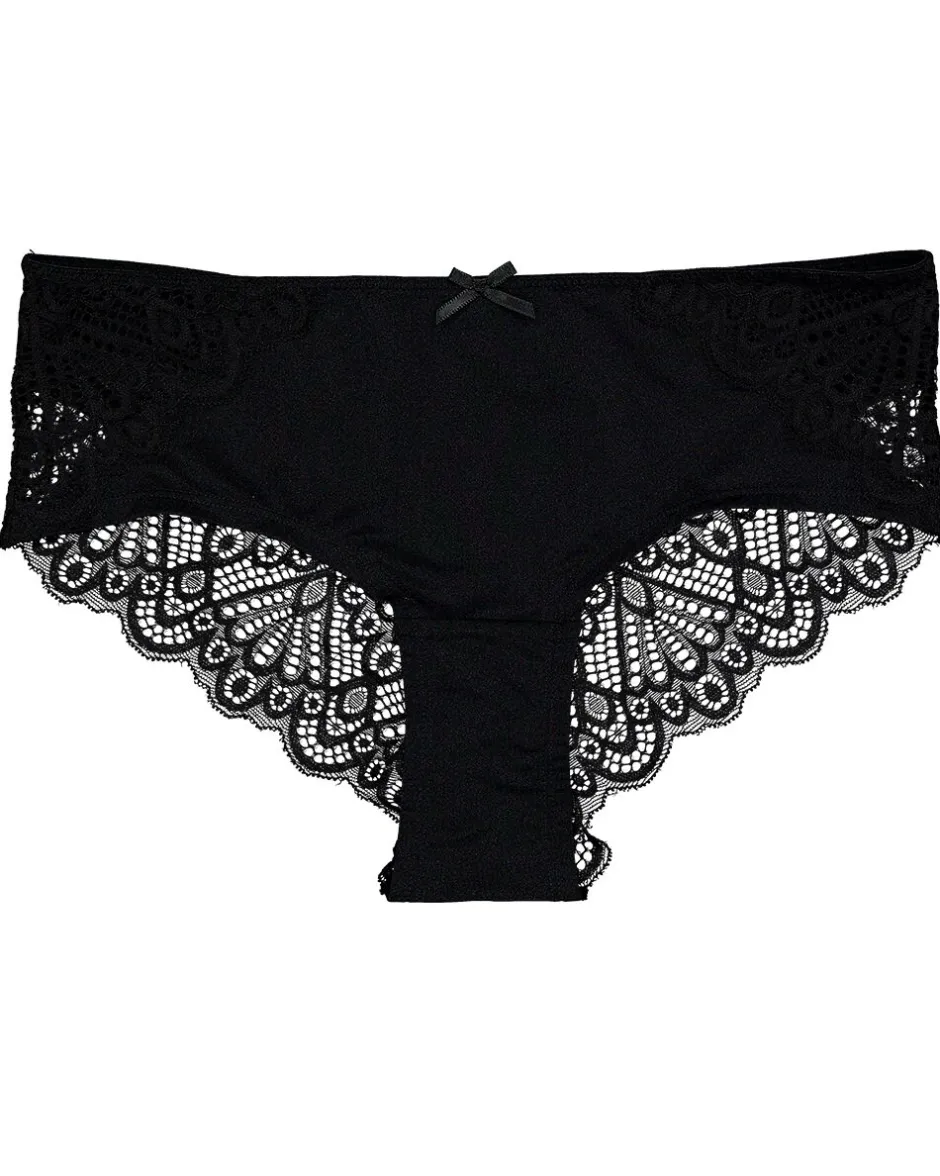 Cette hipster noire pour femme est en microfibre douce et a des finitions en dentelle le long des bords. La taille élastique s’adapte bien, ce qui permet au slip de suivre vos mouvements quand vous le portez. Grâce au tissu lisse, il est agréable sur la peau. La dentelle assure que les bords restent bien en place sous vos vêtements.