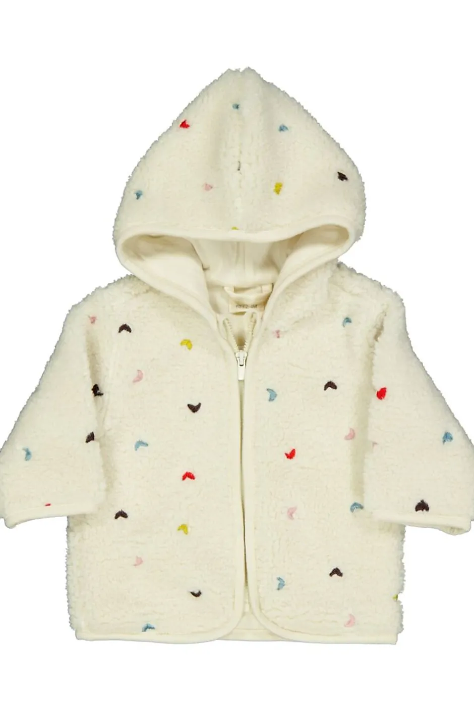 Cette veste de bébé beige à motif de cœurs a une capuche et se ferme devant avec une fermeture éclair, ce qui permet de l’enfiler et de l’enlever facilement. Grâce aux manches longues et à la coupe souple, votre bébé reste confortable et au chaud. Les couleurs douces se combinent facilement avec d’autres vêtements.